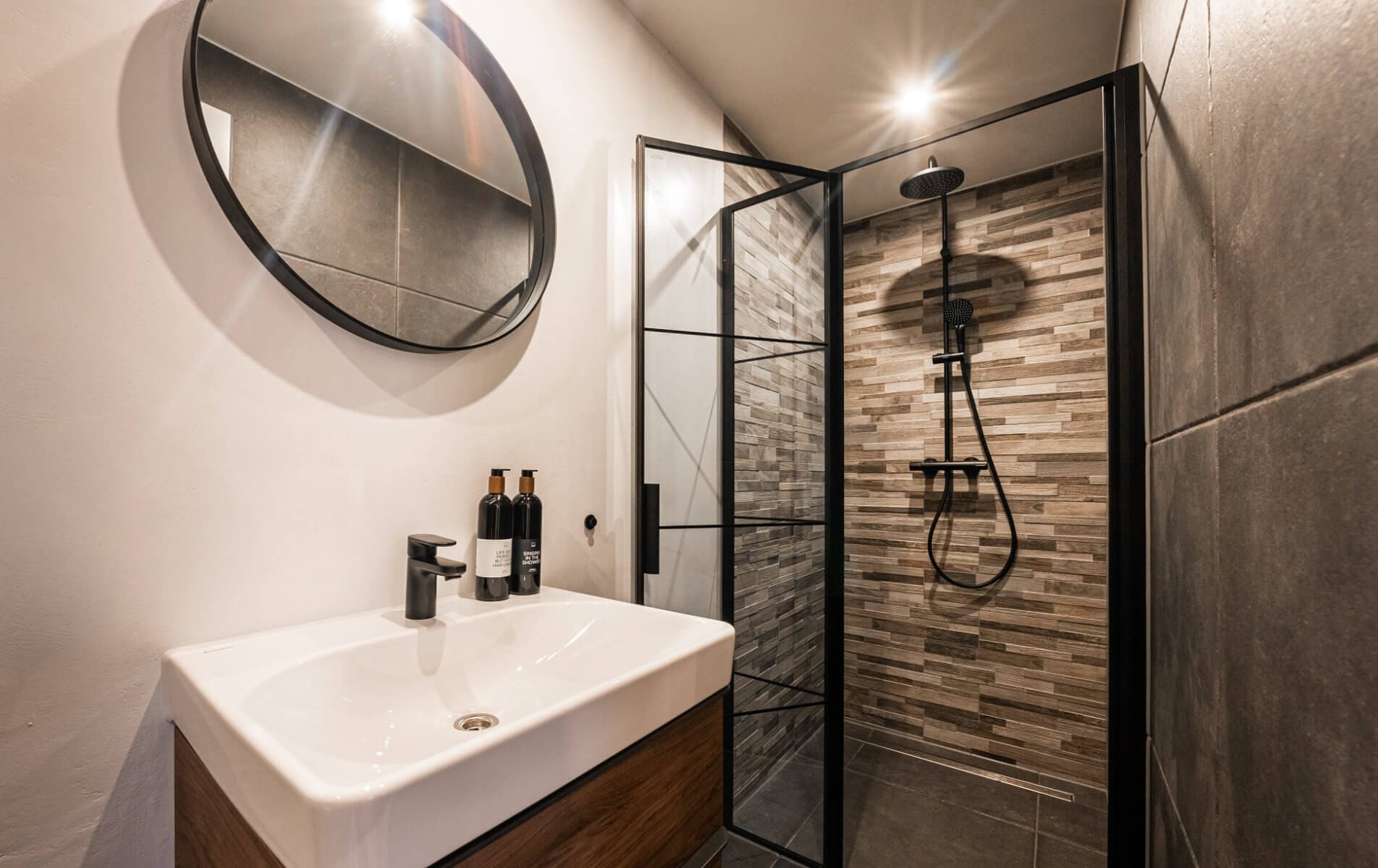 De badkamer is uitgerust met een regendouche, badlinnen, een föhn en shampoo & douchegel.